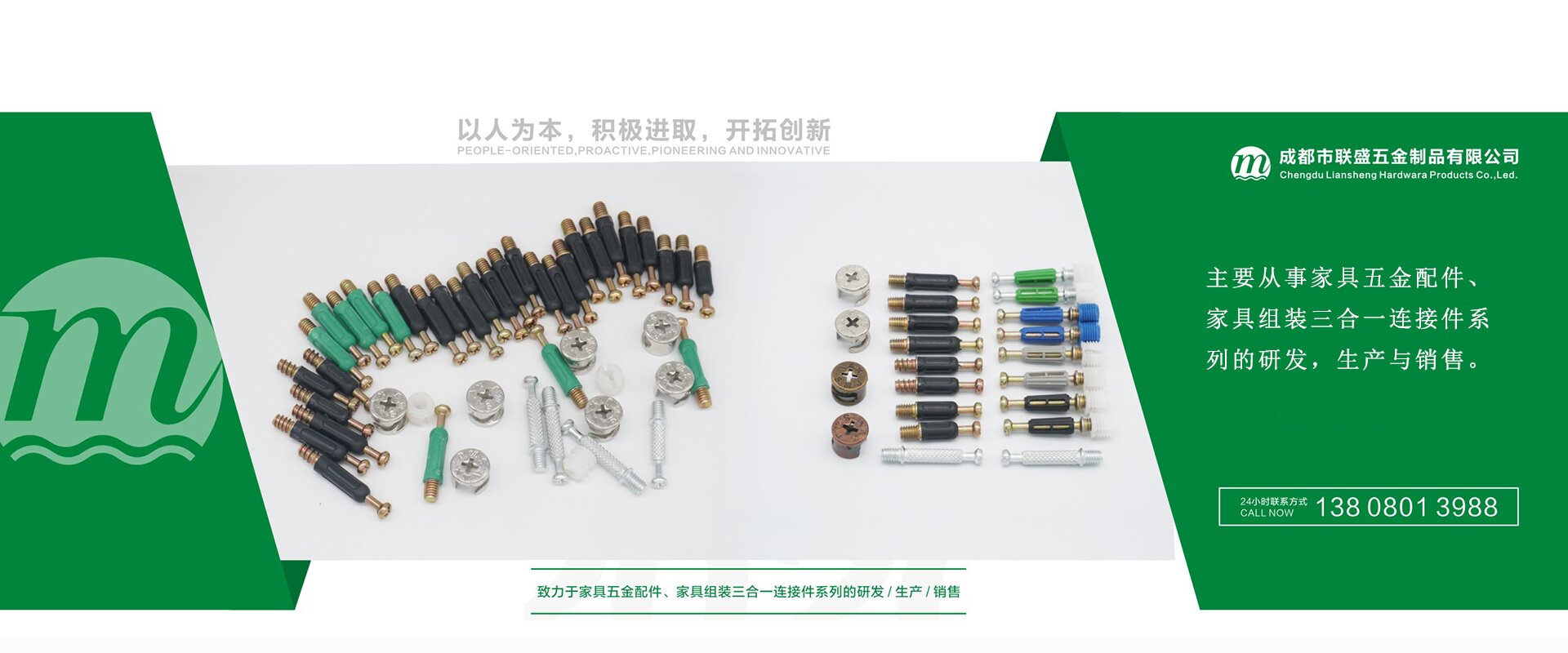 成都市聯(lián)盛五金制品有限公司成立于2012年,現(xiàn)擁有廠房面積16000平方米,主要從事家具五金配件、家具組裝三合一連接件系列的研發(fā),生產(chǎn)與銷售。公司目前主營產(chǎn)品:家具組裝三合一包塑桿、定位桿、鐵桿、滾花鐵桿、雙頭桿、木牙螺絲、板托中軸、隔板釘?shù)取?br> 公司現(xiàn)在具有雄厚的技術(shù)實力,從模具設(shè)計、模具制作到產(chǎn)品生產(chǎn)都有強(qiáng)大的技術(shù)團(tuán)隊和管理團(tuán)隊,擁有家具五金配件從業(yè)十年以上的技術(shù)人員與管理人員多名,另有多年五金配件生產(chǎn)工作經(jīng)驗的員工40余人,都有著豐富的生產(chǎn)經(jīng)驗和敬業(yè)精神。公司現(xiàn)擁有現(xiàn)代先進(jìn)的五金生產(chǎn)設(shè)備150余臺,并且公司正在全面推行ISO9001:2016國際質(zhì)量管理體系,力求生產(chǎn)高效、節(jié)能,制造出質(zhì)量穩(wěn)定、安全,令客戶滿意的高品質(zhì)產(chǎn)品。